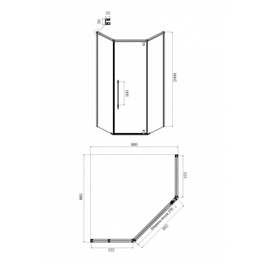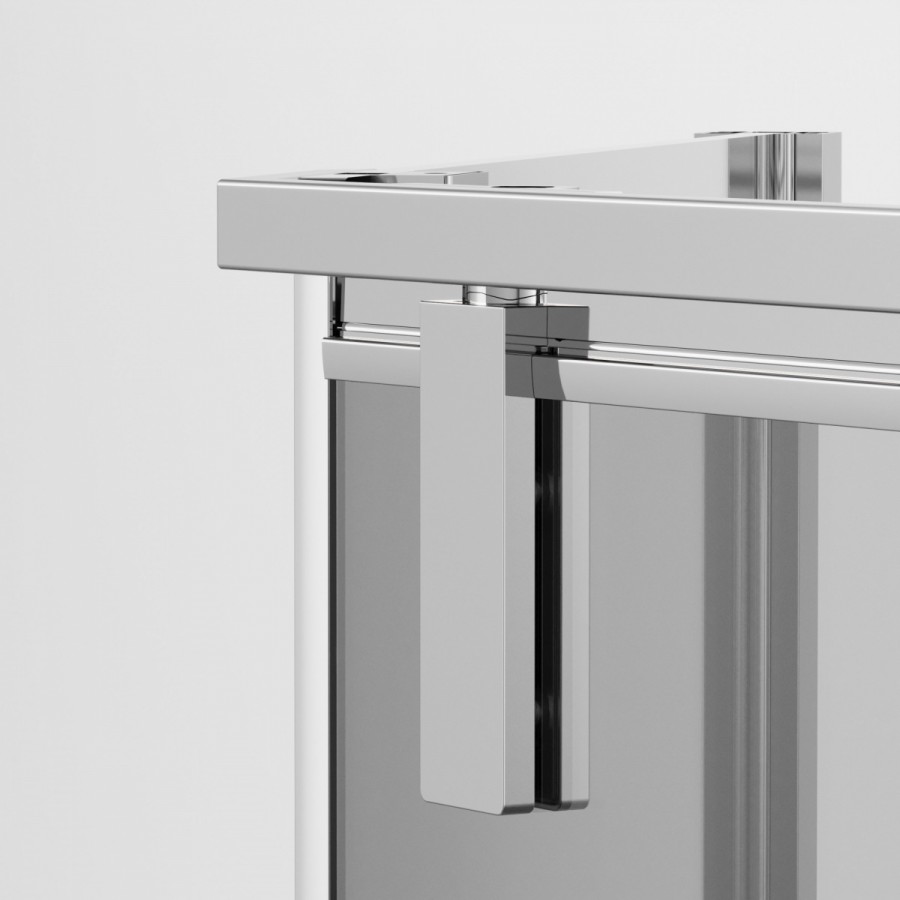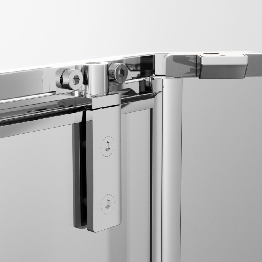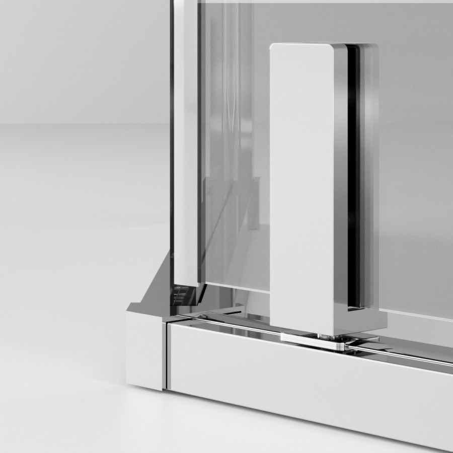 Вертикальные профили, кронштейны для стабилизации ограждений, латунные ручки, планка порога, внутренние и наружные части петель изготовлены в отделке SlimChrome+, придающей максимальную утонченность и блеск для сочетания со смесителем и душем.