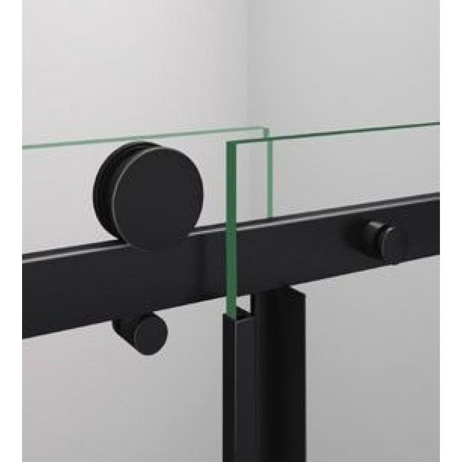 Душевой уголок Good Door Galaxy R-TD-90-C-B 90x90. Стыковые элементы стеклянного ограждения снабжены влагостойкими силиконовыми уплотнителями. Створка плавно скользит по направляющим благодаря надежным бесшумным подшипникам.