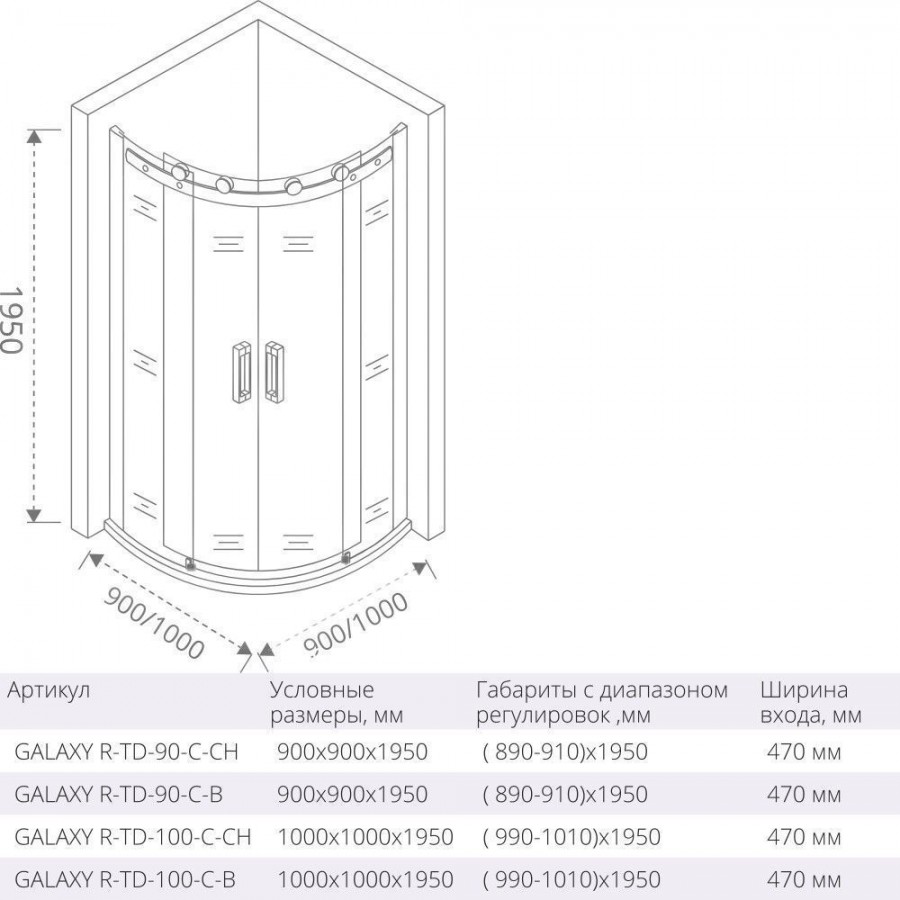 Душевой уголок Good Door Galaxy R-TD-90-C-B 90x90