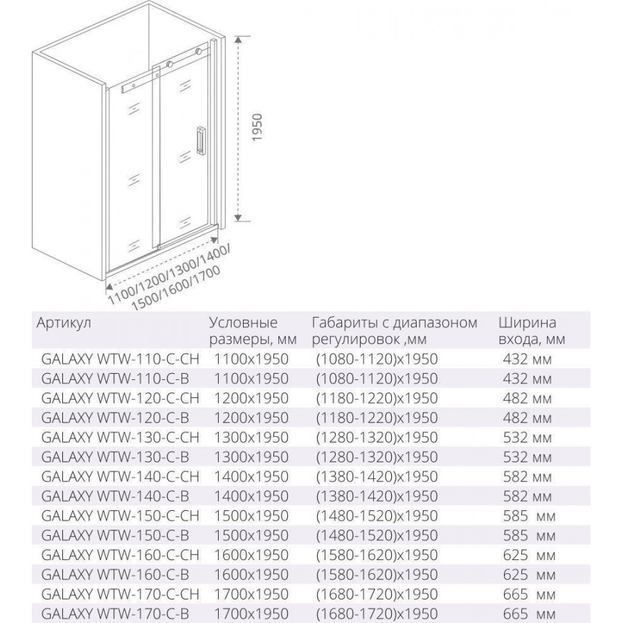 Душевой уголок Good Door Galaxy WTW+SP-C-B 120x90. Металлические элементы конструкции изготовлены из антикоррозионного сплава. Подшипниковые ролики обеспечивают плавное скольжение раздвижной двери.
