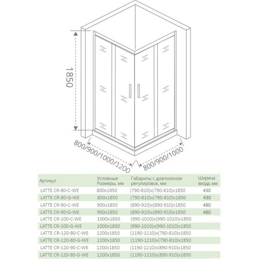 Душевой уголок Good Door Latte CR-120-90-C-WE 120x90. Стыковые элементы стеклянного ограждения снабжены влагостойкими силиконовыми уплотнителями. Магнитное закрывание обеспечивает герметичное прилегание дверей. Обрамление выполнено из алюминиевого профиля с высококачественным покрытием, нанесенным методом электрофореза. Душевые ограждения серии LATTE выпускаются в двух вариантах исполнения с прозрачным стеклом и стеклом грэйп. Серебристый перламутровый алюминиевый профиль.