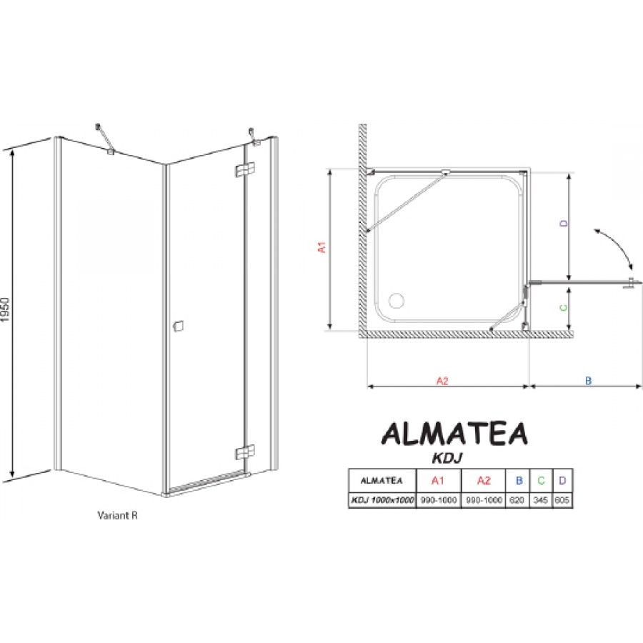Душевой уголок Radaway Almatea KDJ 100 прозрачное стекло R 100х100