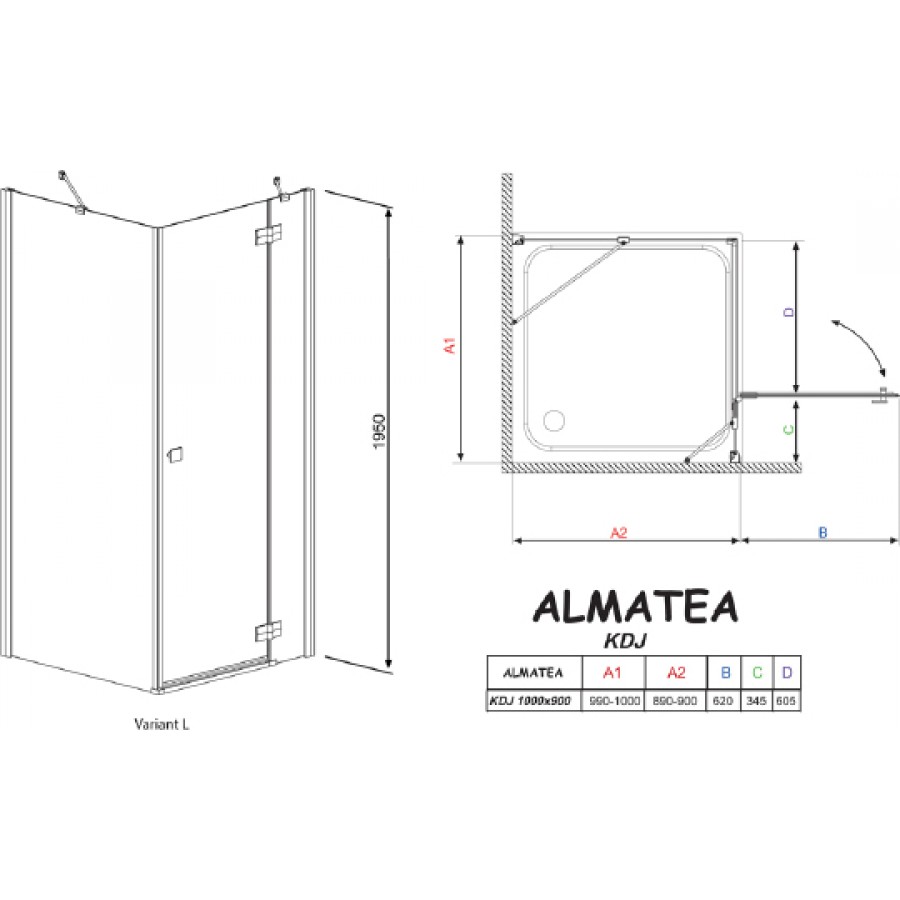 Душевой уголок Radaway Almatea KDJ 100x90 прозрачное стекло R