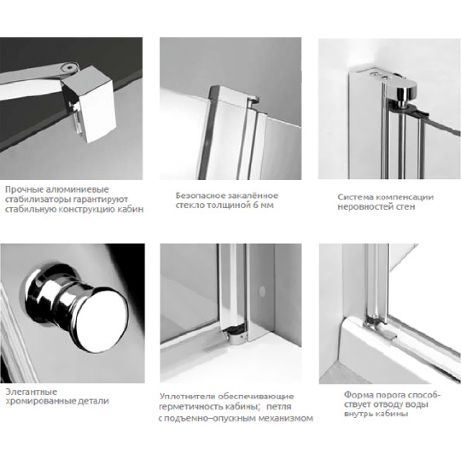 Коллекция Eos II это расширение коллекции Eos. Модели Eos II отличаются тем что у них между створкой двери и стеной находится неподвижное стекло. Обе коллекции очень популярные из-за своей практичности. Широкий модельный рад и доступная цена это основные плюсы этих коллекций. В душевых кабинах Eos II дверь открывается как наружу, так и внутрь.