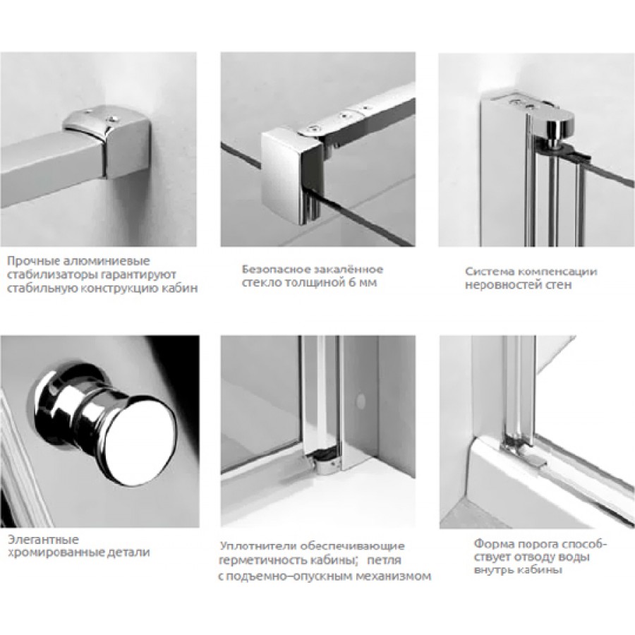 Коллекция Eos очень популярная из-за своей практичности. Широкий модельный рад и доступная цена это основные плюсы этой коллекции. В душевых кабинах Eos дверь открывается как наружу, так и внутрь.