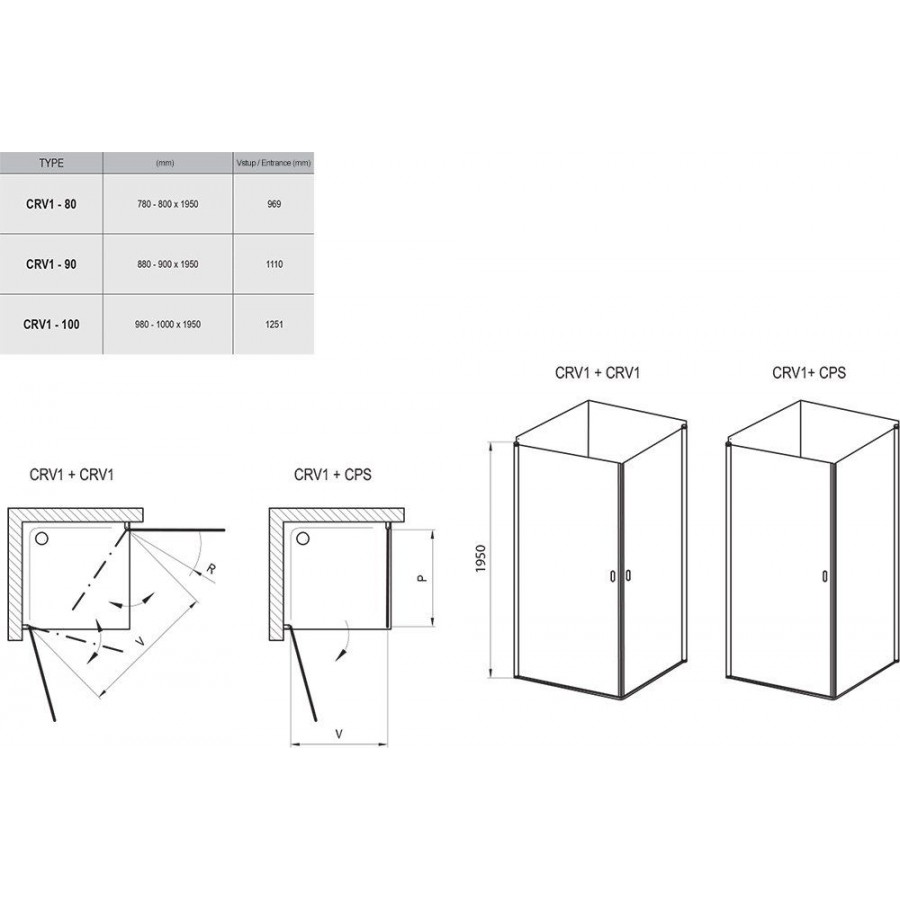 - Душевой уголок состоит из двух душевых дверей CRV1