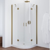 - Изделие состоит из двух ровных неподвижных частей и одной изогнутой части, образующей двери поворотного типа.