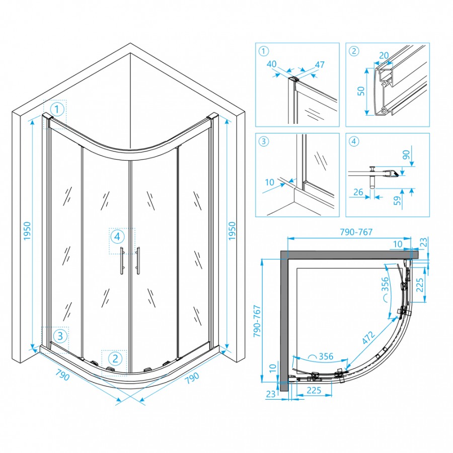 Душевой уголок полукруглый, раздвижные двери из центра. Данная модель представлена в 3-х размерах: 800x800, 900x900, 1000x1000. Прочное стекло рассчитано на активное использование и покрыто специальным защитным покрытием Easy Clean, которое избавит вас от борьбы с известковым налетом. Легкая стильная конструкция идеально сочетается с самыми популярными аксессуарами ванных комнат. Имеет стильный, лаконичный дизайн. Трап или поддон приобретается отдельно.