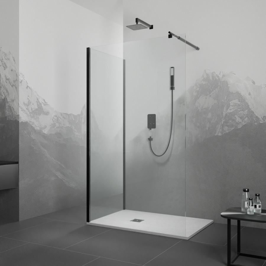 Ударопрочное стекло толщиной 6 мм покрыто составом Easy Clean для защиты от известкового налета и длительной сохранности стекла в чистоте, силиконовые уплотнители уберегут полы от попадания влаги, а универсальная постановка уголка позволит адаптировать конструкцию к самым «капризным» стенам.