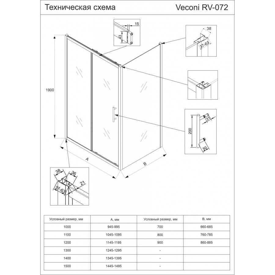Душевой уголок Veconi RV-072B 110x90 без поддона. Душевые углы Veconi имеют лаконичный итальянский дизайн, который подойдет для любого стиля ванной комнаты. Продукция Veconi производится на современном итальянском оборудовании, безопасные закаленные стёкла обладают большой прочностью, а в отделке используется только европейская фурнитура.