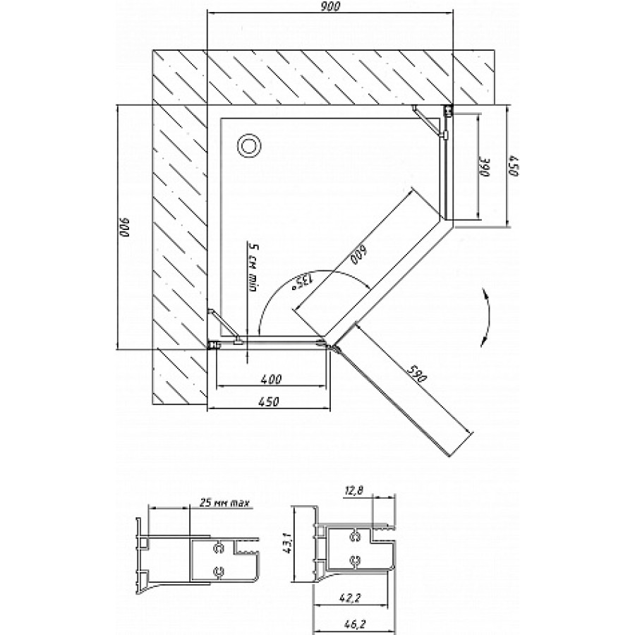Душевой уголок Vegas Glass AFA-Pen 0090 05 10 L без поддона, удобная конструкция для быстрого принятия душа, которая станет отличной заменой или дополнением к традиционной ванне.