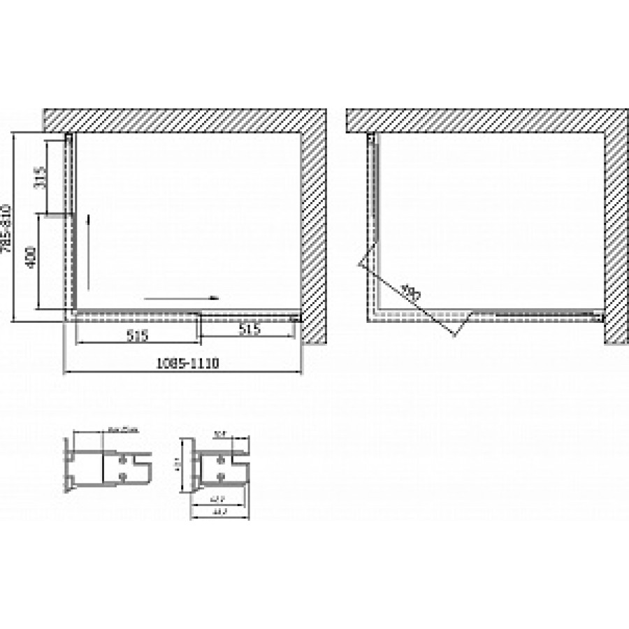 Душевой уголок Vegas Glass ZA-F 110х80 09 01 без поддона, способствует разумной организации любого пространства, подходит для ванных комнат ограниченной площади.