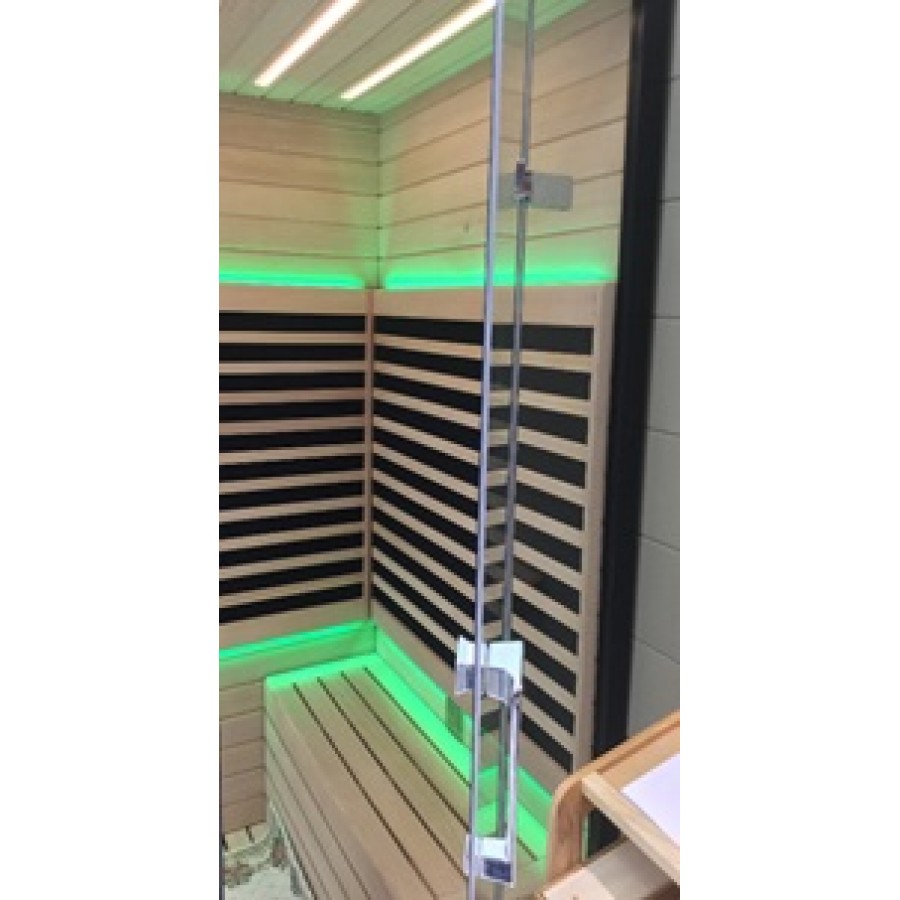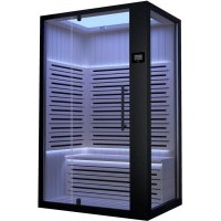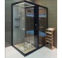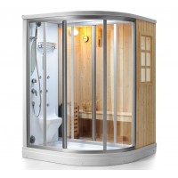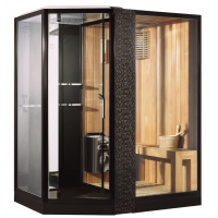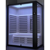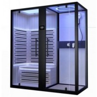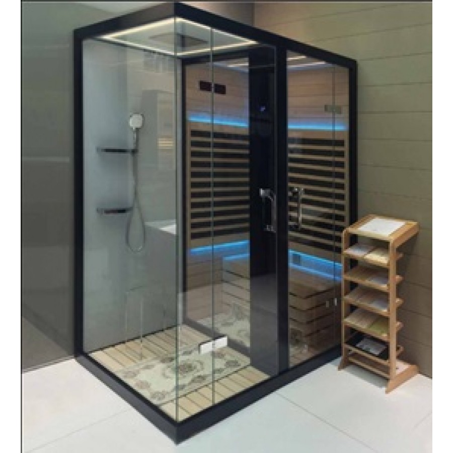 - Комбинированная паровая и инфракрасная кабина, черный профиль, задние белые стекла, в отделке сауны применен канадский кедр;