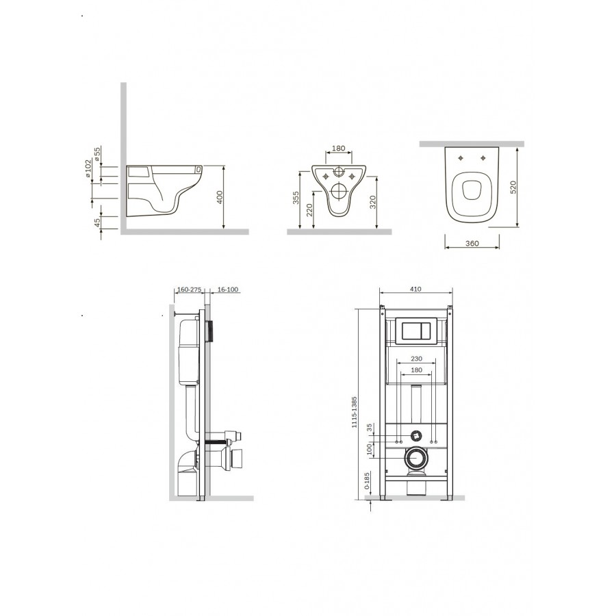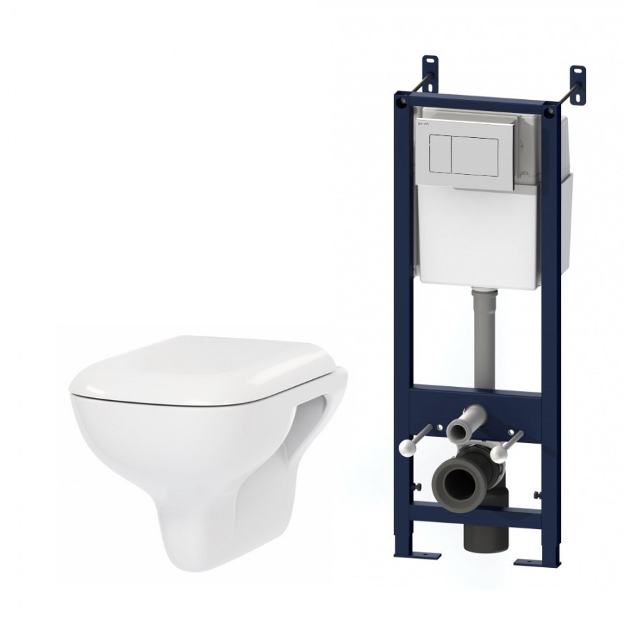 - Система инсталляции с клавишей, подвесной унитаз с сиденьем.