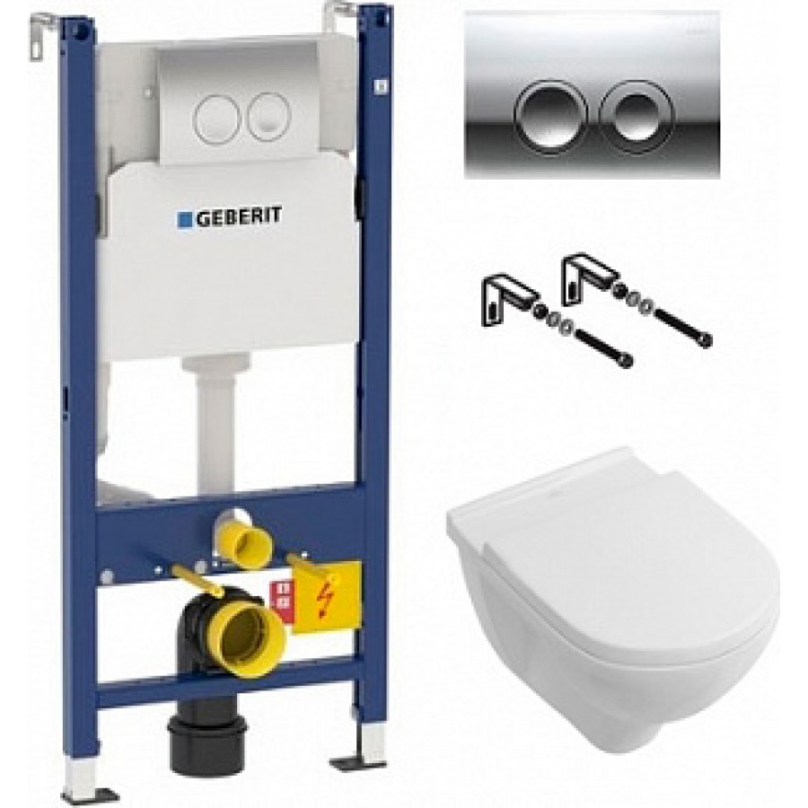 Комплект Унитаз подвесной Villeroy & Boch O'Novo 5660 H1R1 alpin + Система инсталляции для унитазов Geberit Duofix Delta 458.124.21.1 3 в 1 с кнопкой