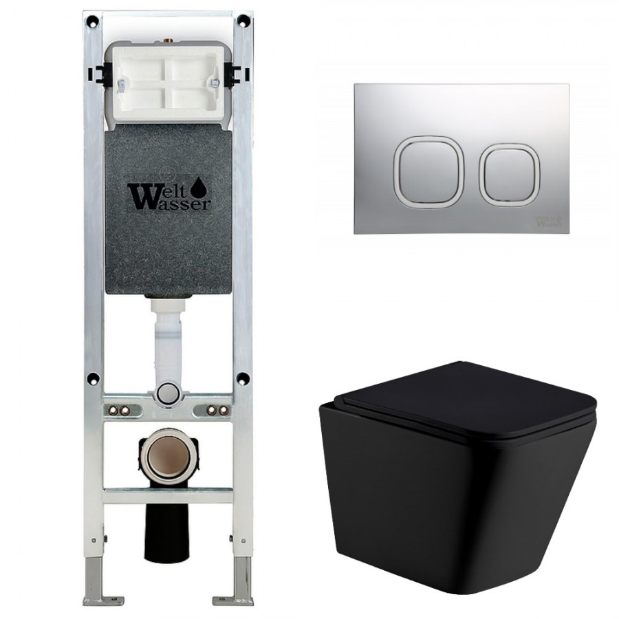 Комплект Weltwasser 10000006515 подвесной унитаз Gelbach 004 MT-BL + инсталляция Amberg 350 ST + кнопка Amberg RD-CR