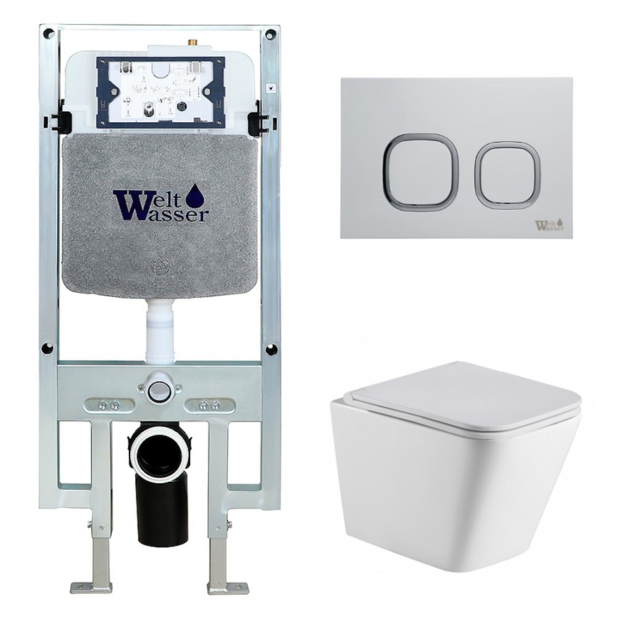 Комплект Weltwasser 10000006701 подвесной унитаз Gelbach 004 MT-WT + инсталляция Amberg 497 ST + кнопка Amberg RD-MT CR
