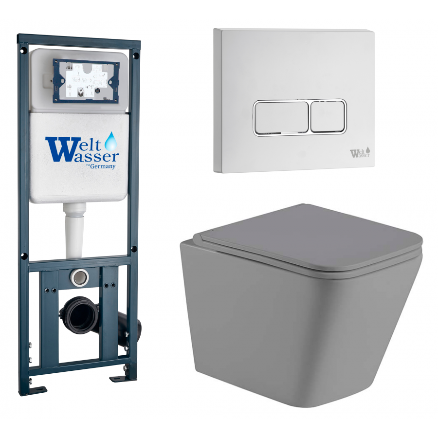 Комплект Weltwasser 10000010433 подвесной унитаз Gelbach 004 MT-GR + инсталляция Marberg 410 + кнопка MAR 410 SE GL-WT