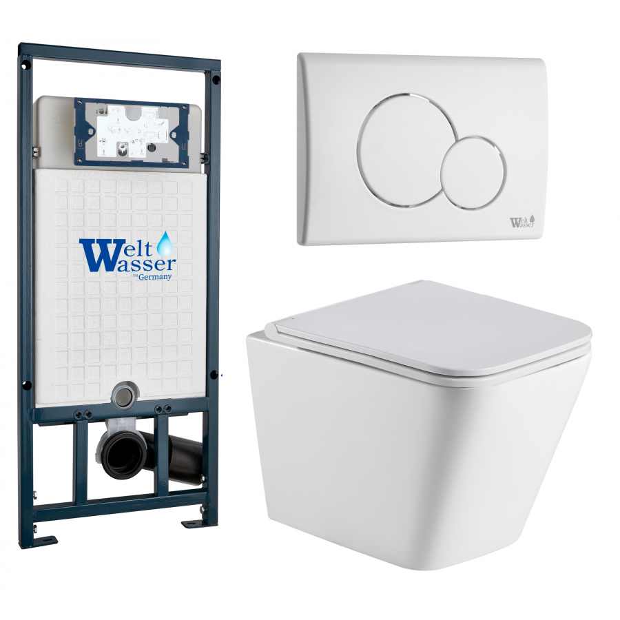 Комплект Weltwasser 10000010455 подвесной унитаз Gelbach 004 MT-WT + инсталляция Marberg 507 + кнопка MAR 507 RD GL-WT