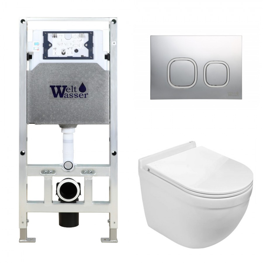 Комплект Weltwasser 10000010658 подвесной унитаз Heimbach 041 GL-WT + инсталляция Amberg 506 ST + кнопка Amberg RD-CR
