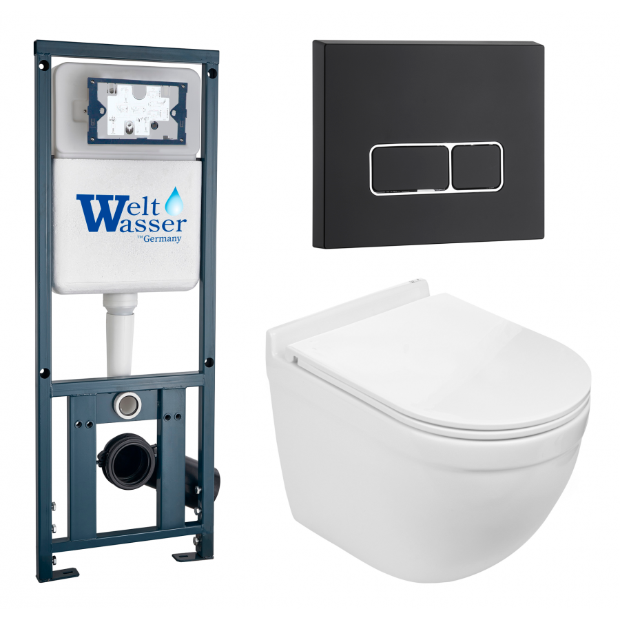 Комплект Weltwasser 10000010672 подвесной унитаз Heimbach 041 GL-WT + инсталляция Marberg 410 + кнопка MAR 410 SE MT-BL