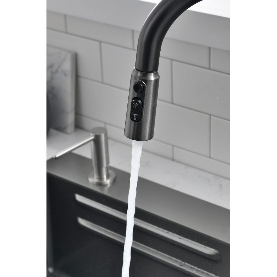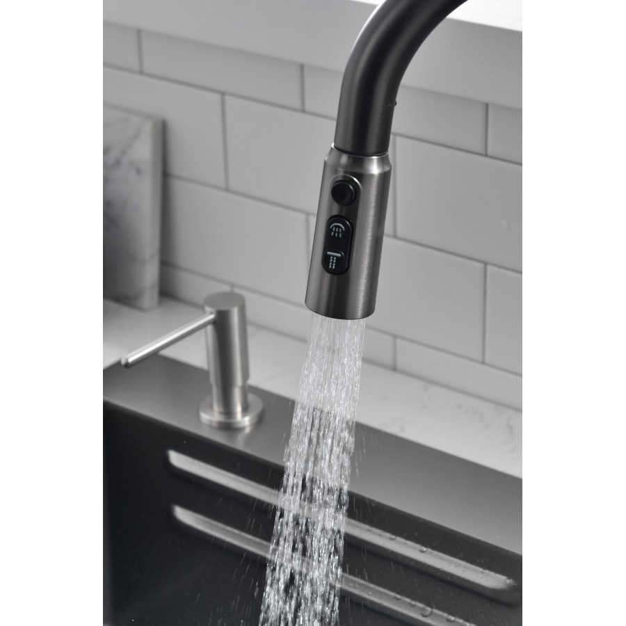 10. Вытягивающийся 2-х режимный излив смесителя с цилиндрической головкой;