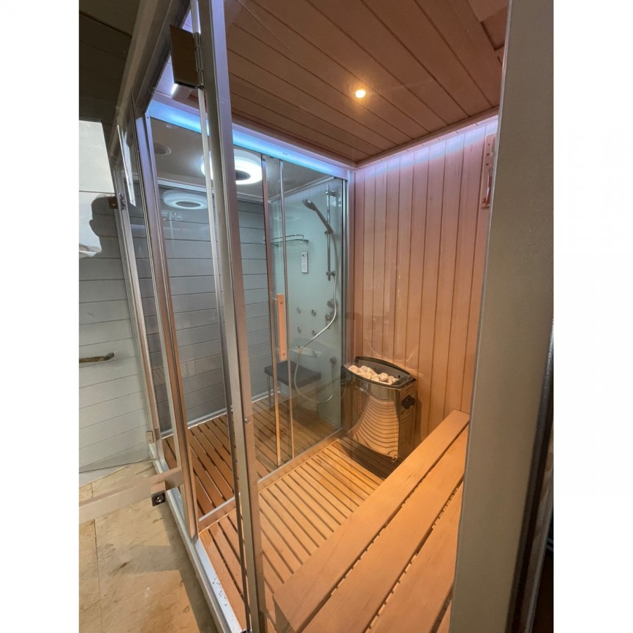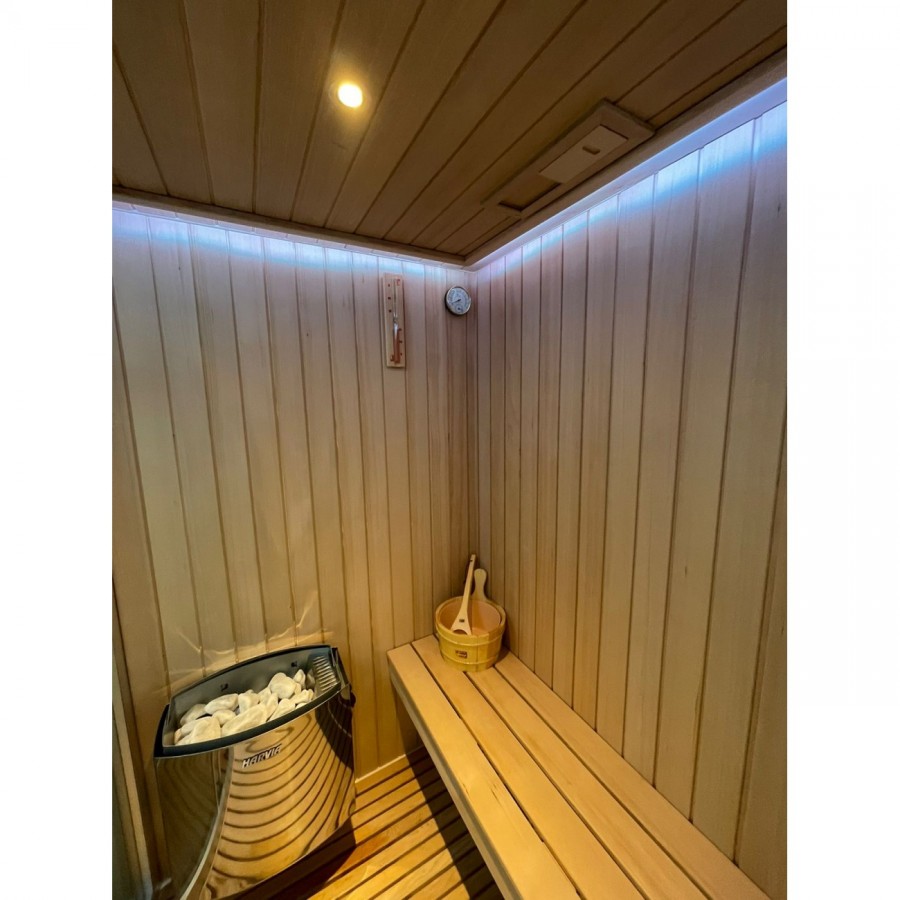 - Дерево Кедр, печь HARVIA 3.5 kw, Led подсветка в сауне, Bluetooth функция.