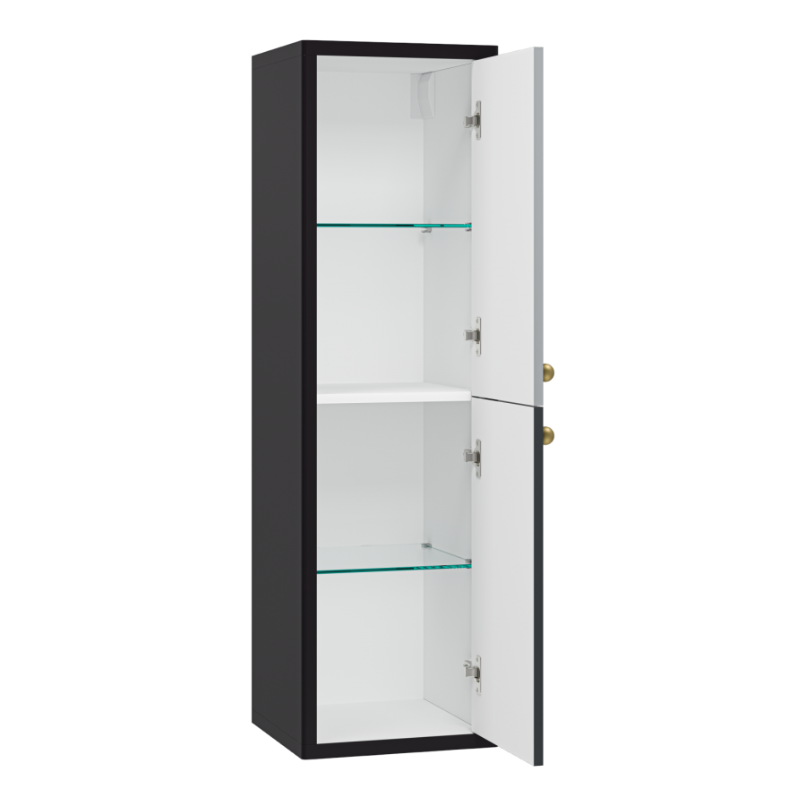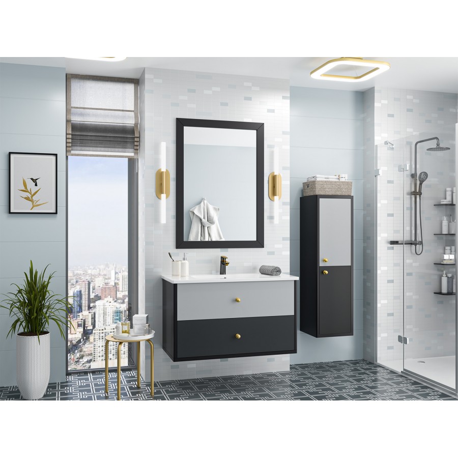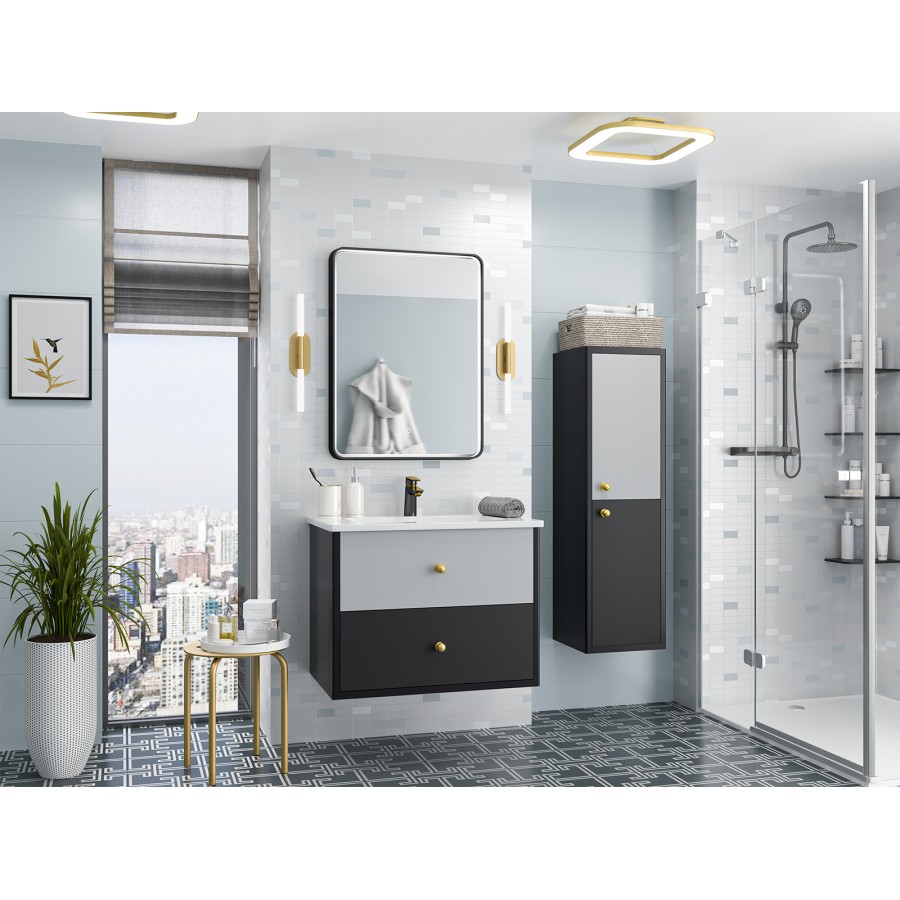 Подвесная мебель в ванную Кристиан и Анастейша из серии "50 оттенков серого" от бренда Brevita разрабатывалась для современных просторных интерьеров. В дизайне мебели доминирует стиль минимализм, характеризующийся лаконичным внешним видом и продуманной конструкцией. Коллекции представлены тумбами шириной 80 и 100 см с 2-мя ящиками, а также пеналами 35 см с 2-мя дверцами (есть модели шкафов с левой и правой ориентацией расположения петель). Главная особенность этих коллекций заключается в особом цветовом исполнении - золотые шлифованные ручки кнопки, корпус выполнен в чёрном (Кристиан) или белом (Анастейша) цвете, а фасады ящиков и дверей имеют по 2 оттенка серых цветов.