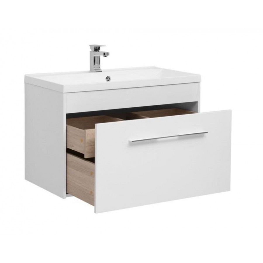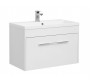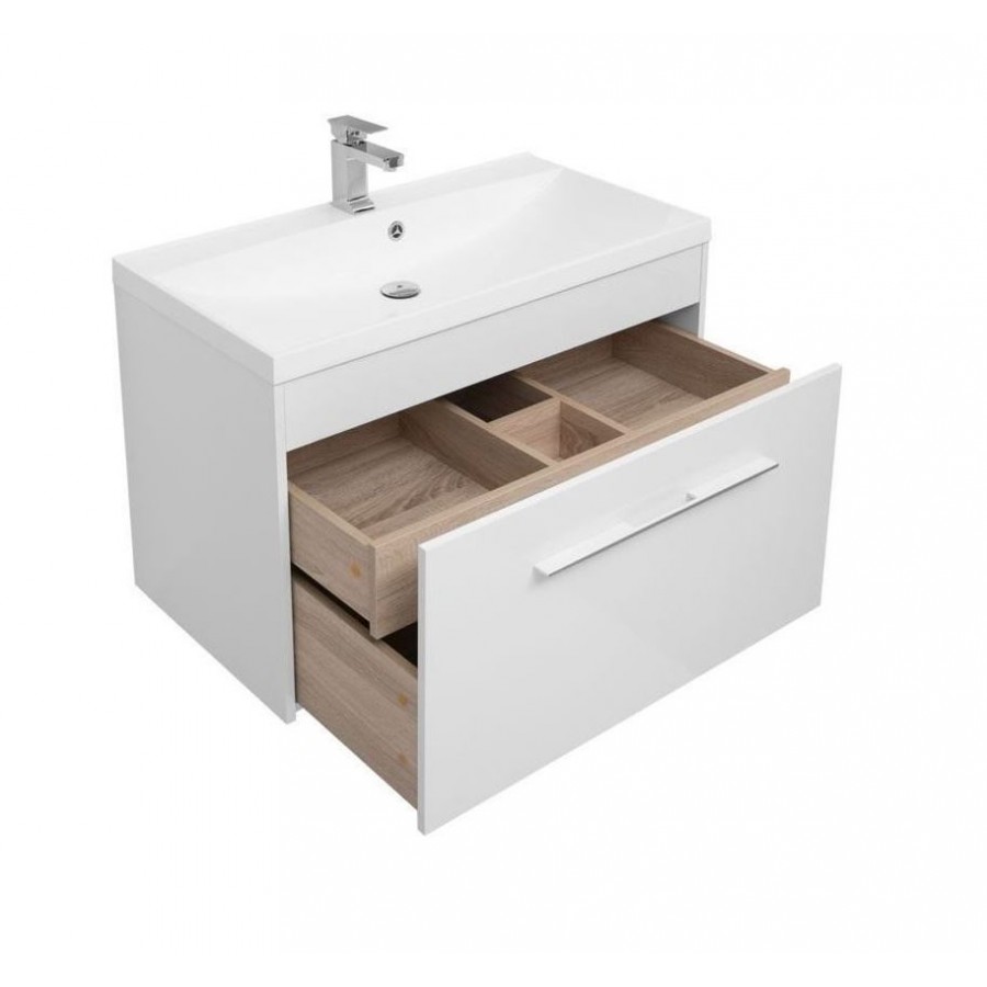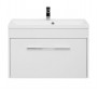 Тумба под раковину Aquanet Августа 90 подвесная белая. Универсальный дизайн тумбы дополнит большинство современных интерьеров ванных комнат. Материал: влагостойкий МДФ/ЛДСП, предназначен для использования в помещениях с повышенной влажностью. Один выдвижной ящик, один скрытый ящик с органайзером для хранения мелочей.