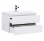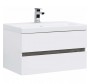 Тумба с раковиной Aquanet Беркли 80 белый/дуб рошелье имеет изюминку - контрастную декоративную полосу между ящиками в цвете «дуб рошелье». Корпус и фасады тумбы выполнены из влагостойкого ЛДСП и покрыты глянцевой белой эмалью. В конструкции тумбы использованы интегрированные ручки без острых краев и внутренних углов.