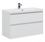 Тумба с раковиной Aquanet Гласс смотрится эффектно благодаря сочетанию белого матового стекла на фасаде верхнего выдвижного ящика с белоснежными глянцевыми поверхностями корпуса, выполненного из МДФ. Такое покрытие, к тому же, надежно защищает мебель от воздействия воды. «Изюминку» во внешний вид вносит внутренняя часть выдвижных ящиков, выполненная в цвете «дуб сонома». Древесная фактура вносит свежесть и живописность в дизайн всего изделия. Производители позаботились о деталях. Ящики лишены выступающих деталей, ручки интегрированы в фасад. Тумбу можно из подвесного элемента преобразовать в напольный, просто докупив универсальные ножки. Раковина из литьевого мрамора «Орлеан» относится к числу накладных моделей и внешне выглядит как единое целое с тумбой. Ящики тумб оснащены направляющими Hettich Quadro c плавным закрыванием, более известным нам как доводчик.