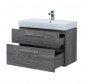 Тумба с раковиной Aquanet Nova имеет белоснежную глянцевую поверхность. Она изготовлена из влагостойкой ламинированной древесно-стружечной плиты и предназначена для использования в помещениях с повышенной влажностью. Цветовым акцентом тумбы служит фактура выдвижных ящиков. Они выполнены в цвете «дуб рошелье» и эффектно контрастируют с белоснежным глянцем фасадов. Тумбу Nova можно установить на стену, тем самым под ним будет свободное пространство, что особенно удобно при уборке помещения. Также можно установить ее на ножки. Для этого их необходимо приобрести дополнительно. Причем, есть выбор: купить белые ножки или черные матовые. В комплекте с тумбой - встраиваемая керамическая раковина «Латина». Эта модель выпускается исключительно для мебели Aquanet. Чаша раковины внутри имеет обтекаемую форму и небольшую платформу с отверстием для смесителя. На нее можно поставить гигиенические принадлежности. Шкафчики тумбы оборудованы надежными направляющими Hettich Quadro Silent System, которые обеспечивают полное выдвижение.