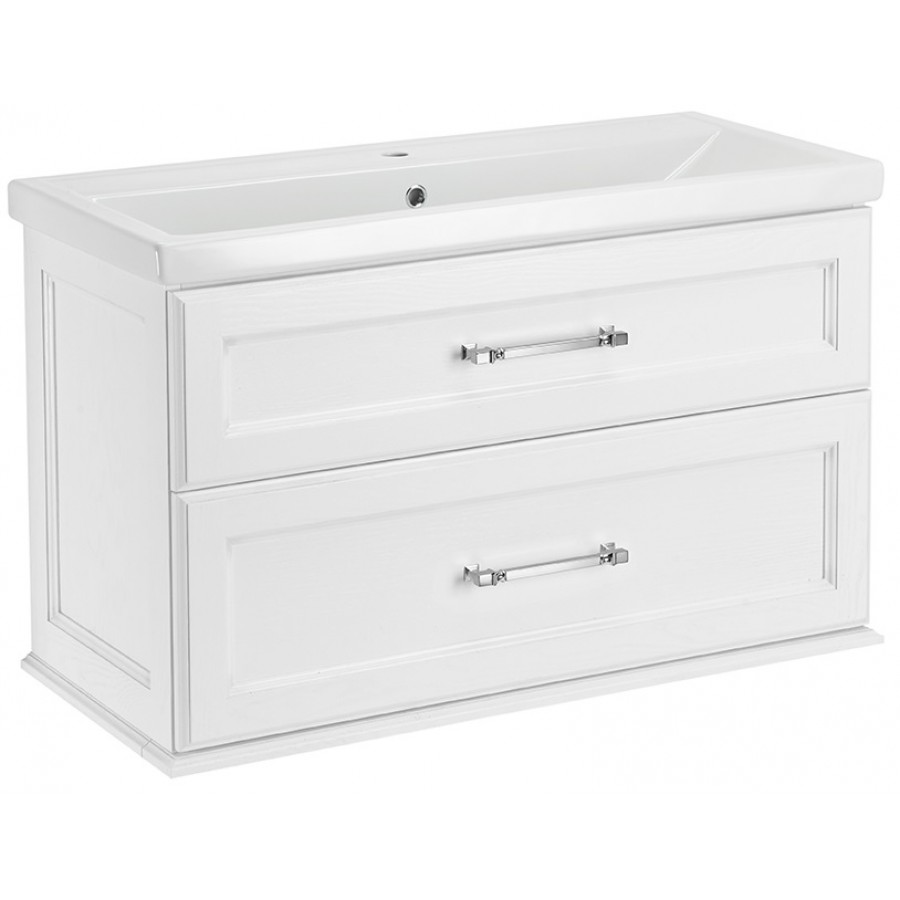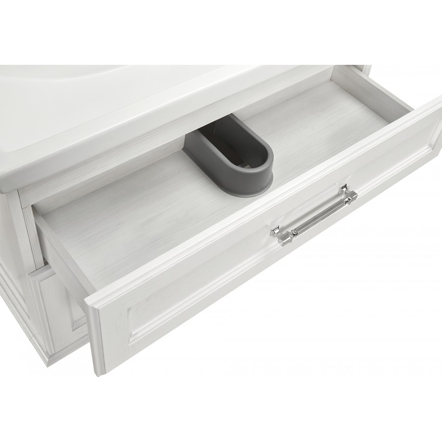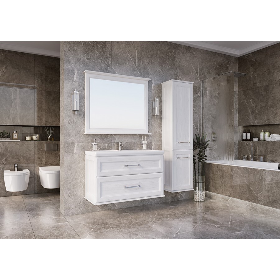 Элегантная и эргономичная подвесная мебель для ванной Венеция 100 Белый Патина Серебро изготовлена итальянскими дизайнерами из массива натурального ясеня . На белой поверхности мебели подчеркивается текстура дерева серебряной патины. Венеция - это не только роскошное украшение, но и ещё надёжная мебель для ванной.
