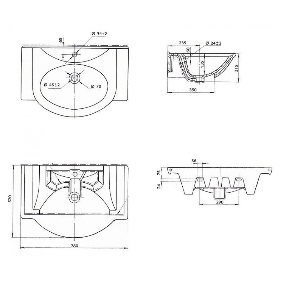 Тумба с раковиной Bellezza Дрея 75 белая 00000010101