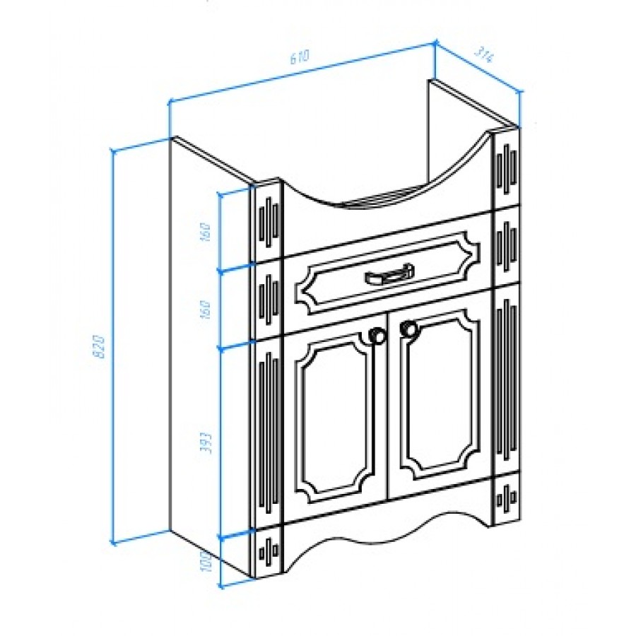 Тумба с раковиной из коллекции Bellezza Кантри 65 белая – прекрасный вариант стильной современной мебели, которой удобно и комфортно пользоваться.