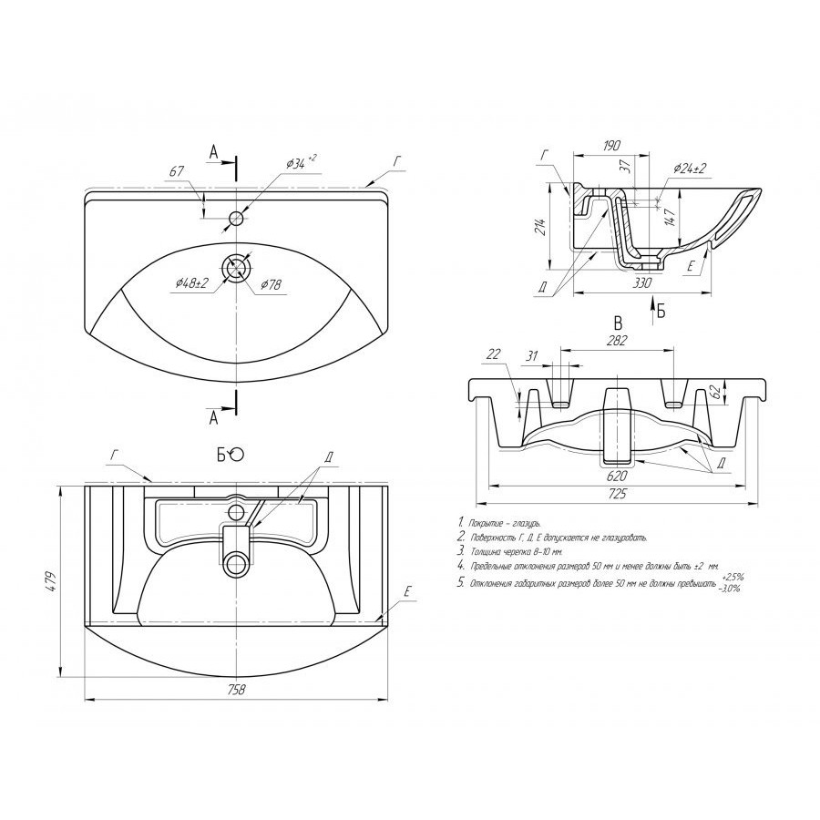 Тумба с раковиной Bellezza Лагуна 75 белая 00000001387