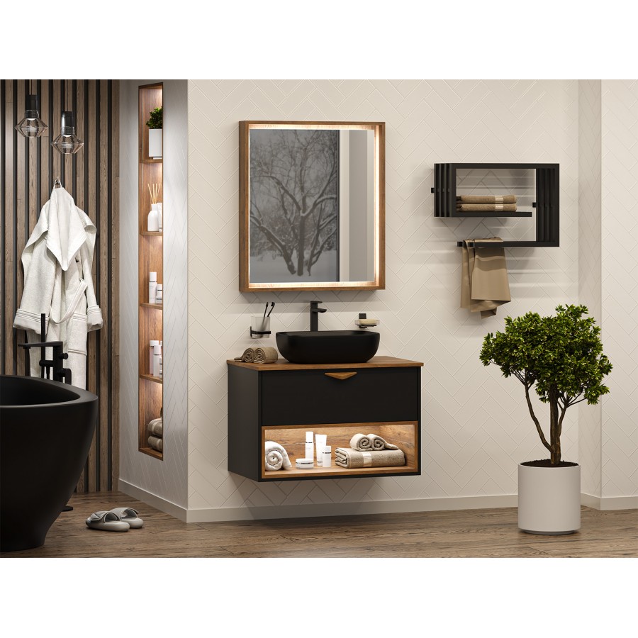 Высокое качество сборки, практичность, функциональность и эффектный внешний вид сделают эту мебель оригинальным дизайнерским решением для современной ванной комнаты. Выдвижной ящик тумбы оснащен бесшумными доводчиками и дизайнерской ручкой из дерева. Уверены, что стиль, качество и комфорт BERGEN сделают любую ванную комнату местом для релакса и вдохновения.