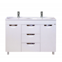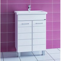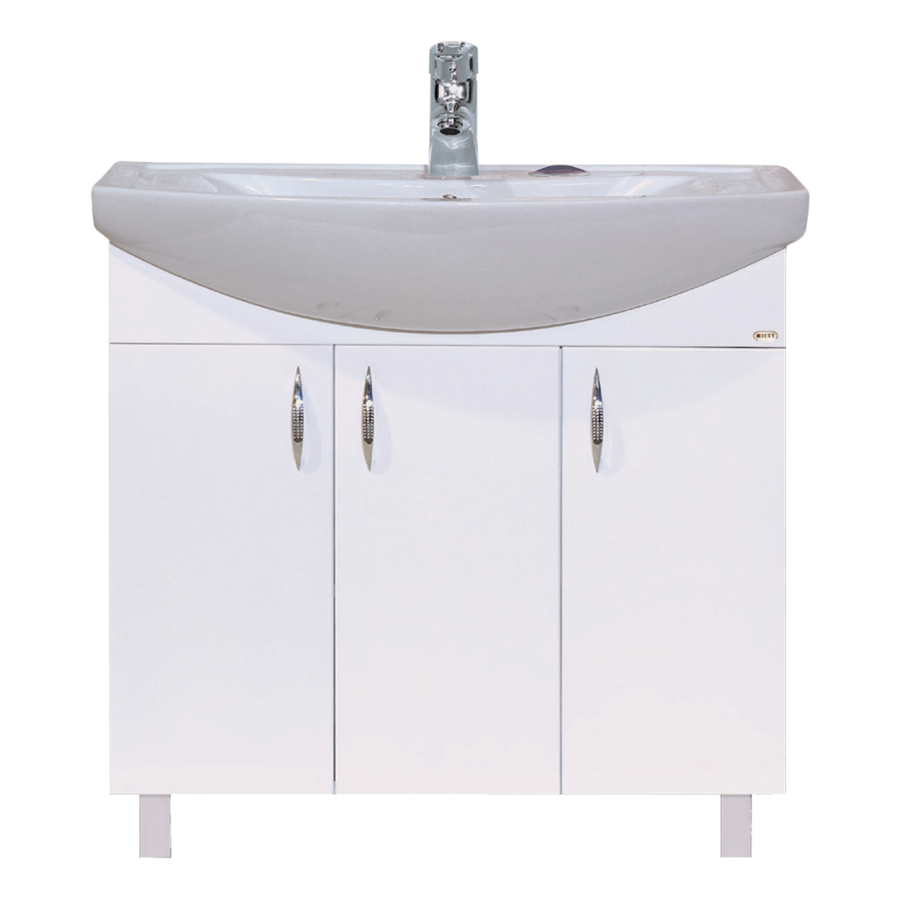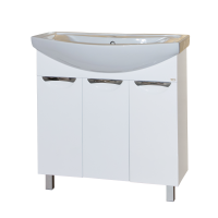 Тумба оборудована тремя распашными дверцами, изготовленными из надежного влагостойкого МДФ. Сверху установлена широкая накладная раковина с удобными боковыми бортиками. Дополнительно можно приобрести большое прямоугольное зеркало и компактный шкаф-пенал из коллекции Балтика, выдержанной в минималистичном стиле.