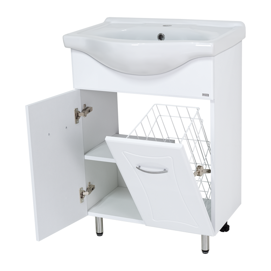Тумба под раковину Misty Классик 60 белый с бельевой корзиной