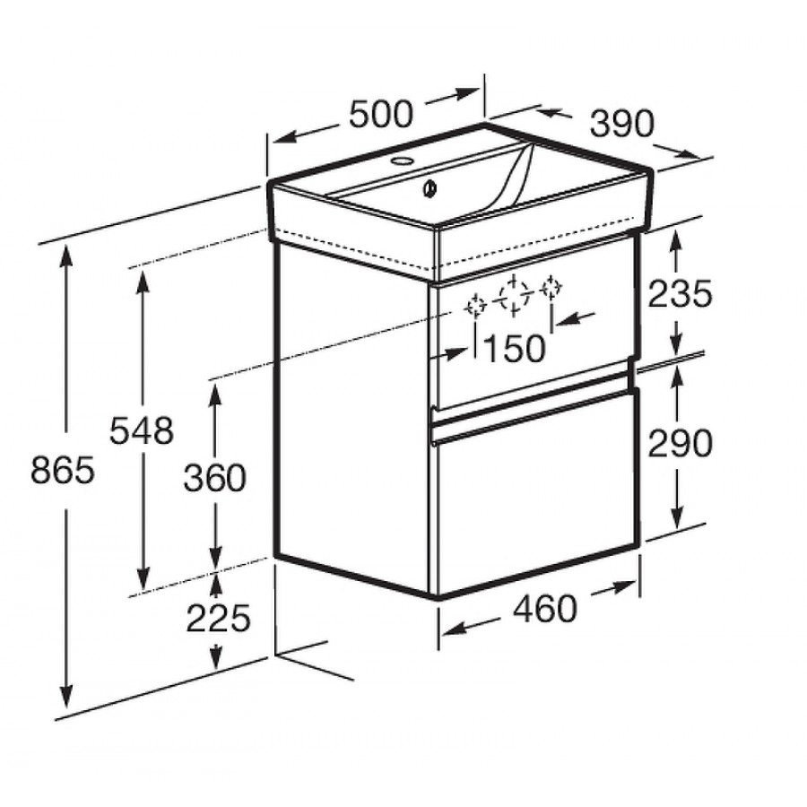 Тумба под раковину Roca OLETA 50 подвесная белый матовый с 2 ящиками A857638501