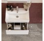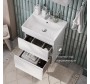 Тумба под раковину позволяет использовать мебель Oleta даже в небольших ванных комнатах. Несмотря на компактную глубину, тумба комплектуется раковиной Oleta с достаточно вместительной чашей. Лаконичный и современный дизайн раковины притягивает к себе взгляд. 2 выдвижных ящика тумбы установлены на направляющие HETTICH, которые гарантируют продолжительную безупречную функциональность и максимальный комфорт эксплуатации. Скрытый монтаж не портит элегантный дизайн мебели, а возможность полного выдвижения обеспечит быстрый доступ к необходимым предметам. Внутренняя отделка ящиков выполнена в цвете бежевый текстиль, приятна на ощупь и предотвращает скольжение предметов. Профильная ручка во всю ширину фасада удобна в использовании и позволяет сочетать мебель Oleta c различными цветами смесителей и аксессуаров для ванной комнаты. Ручка выполнена в виде J-профиля.
