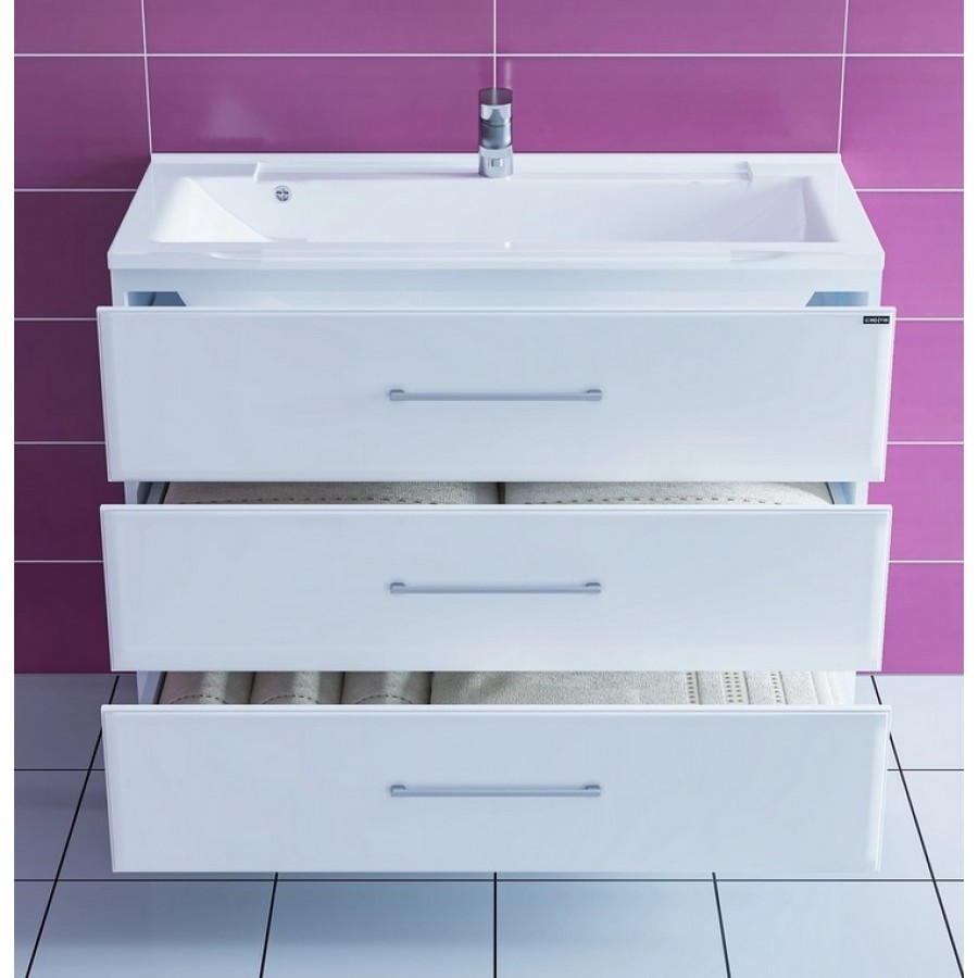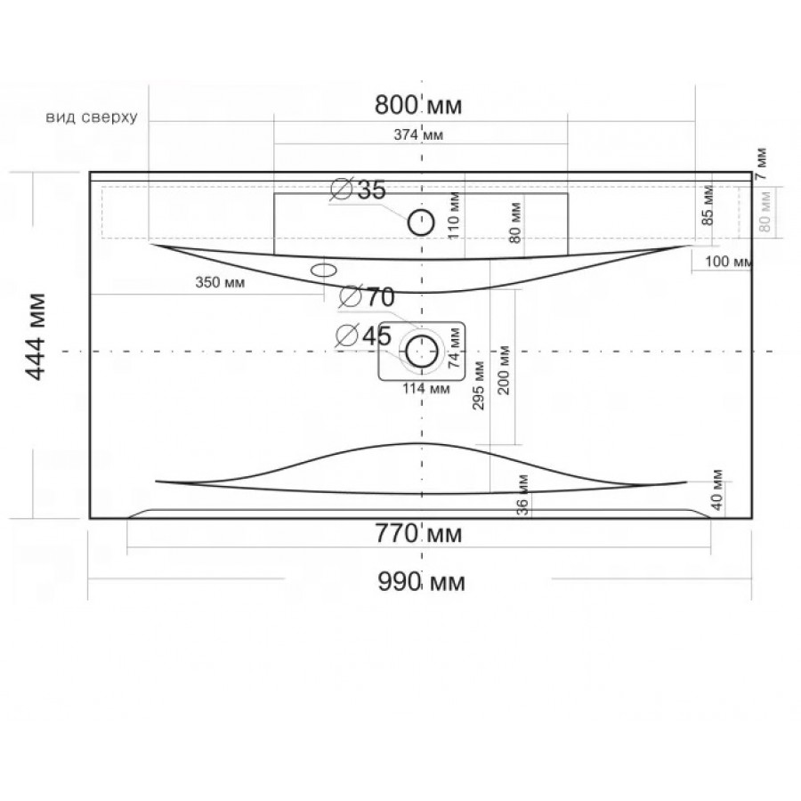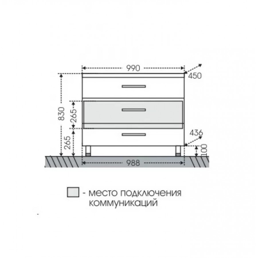 Умывальник "Elen 100" - это современный прямоугольный умывальник из искусственного мрамора, со сливом-переливом.