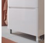 Современная подвесная тумба с раковиной для ванной Лана белого цвета с гладким фасадом и двумя выдвижными ящиками. Корпус тумбы изготовлен из ДСП, фасад из МДФ, боковые стенки и передние планки выполнены из глянцевой белой ДСП. Нижний ящик с высоким фасадом, также как и верхний внутри отделан фирменным материалом «интерьерный лен».