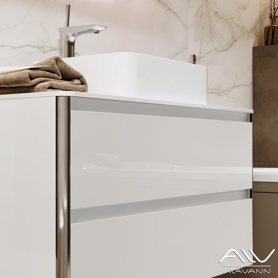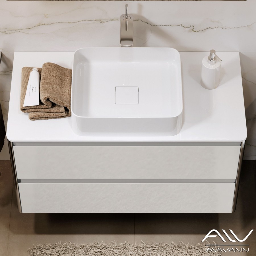 Тумба с умывальником Alavann Laurel 100 белая (раковина Кировит)