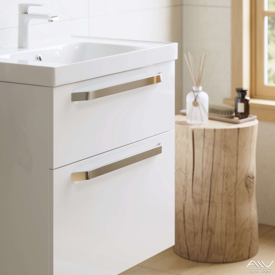 Монтируется тумба с раковиной при помощи L-образных навесов. Подвесная конструкция позволяет экономить пространство, выгодно дополняя любой интерьер.