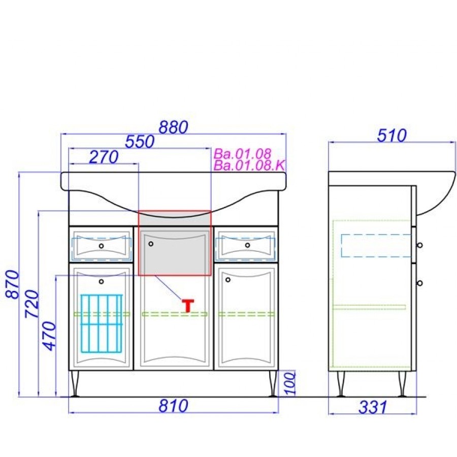 Тумба с умывальником AQWELLA Барселона 85 BA0108K