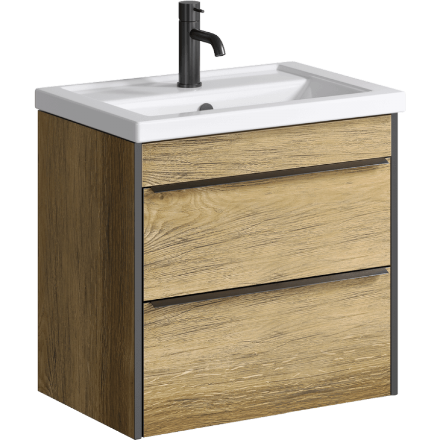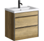 Тумба с умывальником AQWELLA FARGO - отличное решение для современного интерьера! Фасады и корпус выполнены из ЛДСП в цвете дуб балтийский, кромка - стильного матового черного цвета. Алюминиевые ручки на тумбах также окрашены в черный цвет, внутренняя отделка ящиков – дуб балтийский. Ящики имеют скрытые направляющие австрийского бренда Blum с системой мягкого закрывания. Также тумба оснащена итальянскими навесами от Camar, они легко выдержат нагрузку до 200 кг.