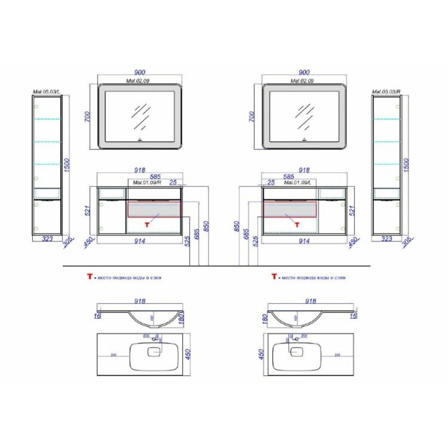 Тумба с умывальником AQWELLA MALAGA 90 левая белый Mal.01.09/L