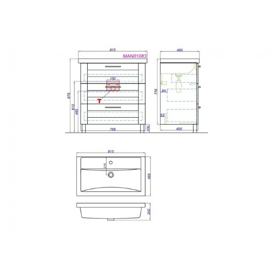 Тумба с умывальником AQWELLA MANCHESTER 80 напольная MAN01083