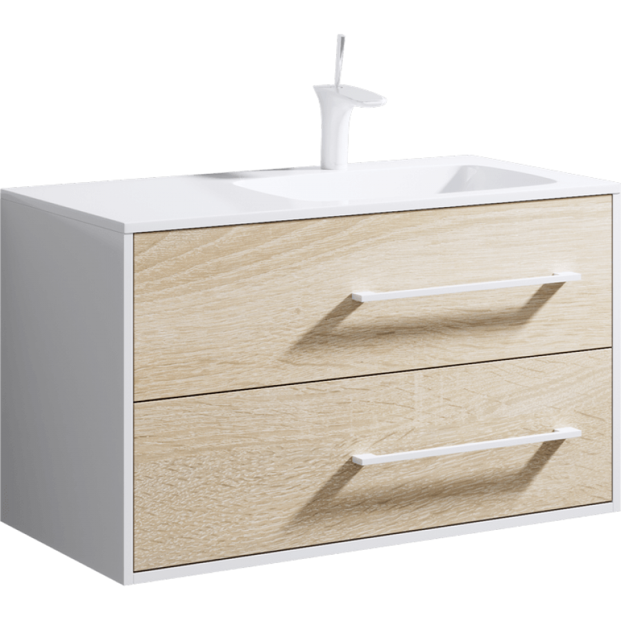 Любители светлых современных интерьеров по достоинству оценят тумбу с умывальником AQWELLA MIAMI. В стилистике гармонично переплетены два направления: минимализм и натуральные природные фактуры. Фасад Miami изготовлен из высококачественного ДСП в комбинации цветов «дуб сонома» и «белый глянец». У тумбы два ящика с системой мягкого закрывания австрийского бренда Blum.